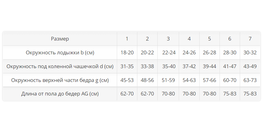 Компрессионный трикотаж создает эластичный каркас, препятствующий застою венозной крови, сохраняя необходимые условия для нормального функционирования вен, и предотвращает развитие отеков. Одним из необходимых условий возврата венозной крови является наличие перепада давления, распределение давления с уменьшением компрессии от лодыжки к бедру: I класс компрессии – 18-22 мм рт. ст., II класс компрессии – 23-32 мм рт. ст.