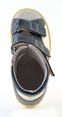 Сандалии изготавливают из нат.кожи. Обеспечивают их жесткой задней частью и берцами, которые отлично поддерживают стопы при их отклонениях. Высокий берец необходим для иммобилизации движения голеностопа. Это дает возможность суставам развиваться правильно или предотвращает развитие деформаций, эффект достигается при регулярном ношении.